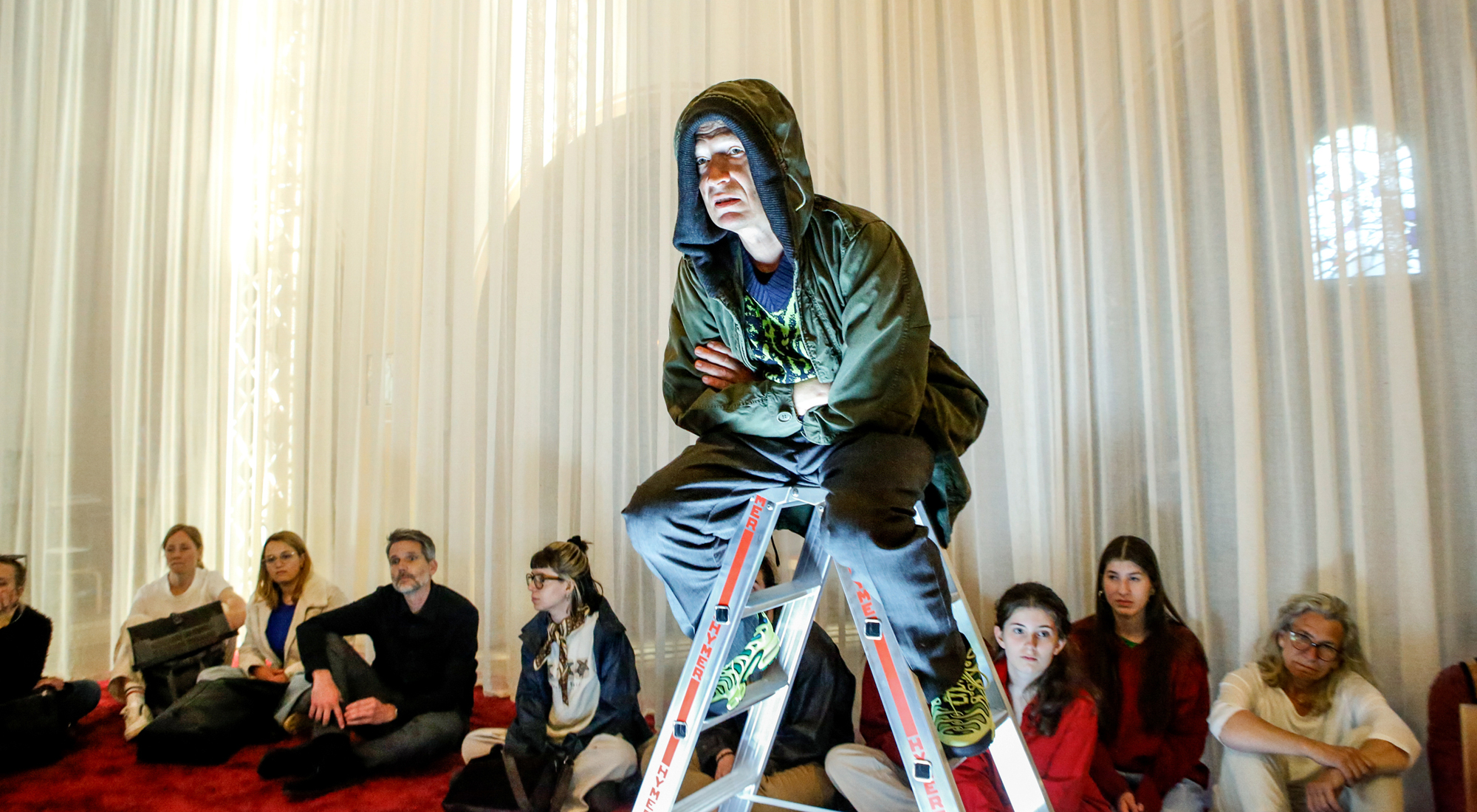Schließlich kommt die Grube zu Wort. Dieses riesige, tiefe Loch, an dessen Abbruchkante der Hambi steht, mischt sich ein. Sie spricht zu uns – und weit zurück geht ihre Erzählung. An ihrer Seite: (uralte) Tiere, mythologische Figuren und eine sehr weise Atmosphärenchemikerin. Der Text des Theaterautors Mehdi Moradpour, geschrieben anlässlich von Exit Hambi, ruft auf poetische und humorvolle Weise die großen Fragen von Mensch und Natur auf und lädt zu einem gemeinschaftlichen Moment des Innehaltens.