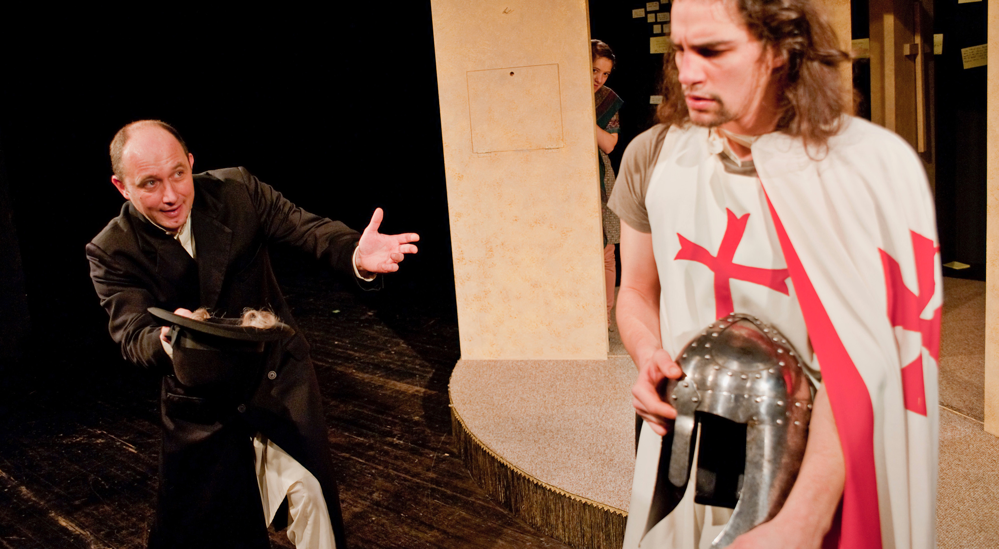 Lessings Ringparabel heutigen Jugendliche flott und eingängig zu vermitteln, ist das Ziel von Hubs Stück und von Michael Lippolds Inszenierung, die mit viel Musik und Schwung, mit Slapstick und lustigen Ideen die Geschichte des jungen Paares zeigt, dessen Liebe stärker ist als aller religiöser Eifer. Mit einer Vielzahl kleiner beschriebener Zettel gestaltet Sarah Bernardy die Klagemauer, den „Briefkasten Gottes“, als Ort des Geschehens, der geprägt ist von einer rotierenden runden Scheibe als Haus, das wie ein Kuchendiagramm gedrittelt ist und jeder der drei monotheistischen Religionen gleich viel Raum bietet. Sigrid Dispert und Jonathan Schimmer zeigen charmant und frisch die jungen Liebenden, die sehr schnell die Barrikaden unterschiedlichen Glaubens herunterreißen und zueinander finden. Gabriel Rodriguez und André Felgenhauer zeigen die Eiferer als herrlich groteske Karikaturen, Rodriguez einen säbelrasselnden Sultan, quirlig wie ein tanzender Derwisch, unberechenbar cholerisch, Felgenhauer einen hochmütig boshaften Bischof, geizig, mordlüstern, verächtlich. Zwischen ihnen ist Rainer Scharenberg eine wundervolle Besetzung für einen Nathan, der misstrauisch ist aus gutem Grund, der traumatisiert und doch allem gegen ihn gerichteten Hass zum Trotz auf der Suche nach der Möglichkeit eines friedlichen Lebens ist. (…) Ist es richtig, das eine neben das andere zu stellen? Sind Nathan, der Sultan und der Bischof in ihrer Torheit ebenbürtig oder gibt es Unterschiede? Gibt es Täter und Opfer oder sind alle gleich? Viele Fragen wirft Lippolds Inszenierung auf – und das ist nicht schlecht für ein Jugendstück. (Neuss-Grevenbroicher Zeitung)