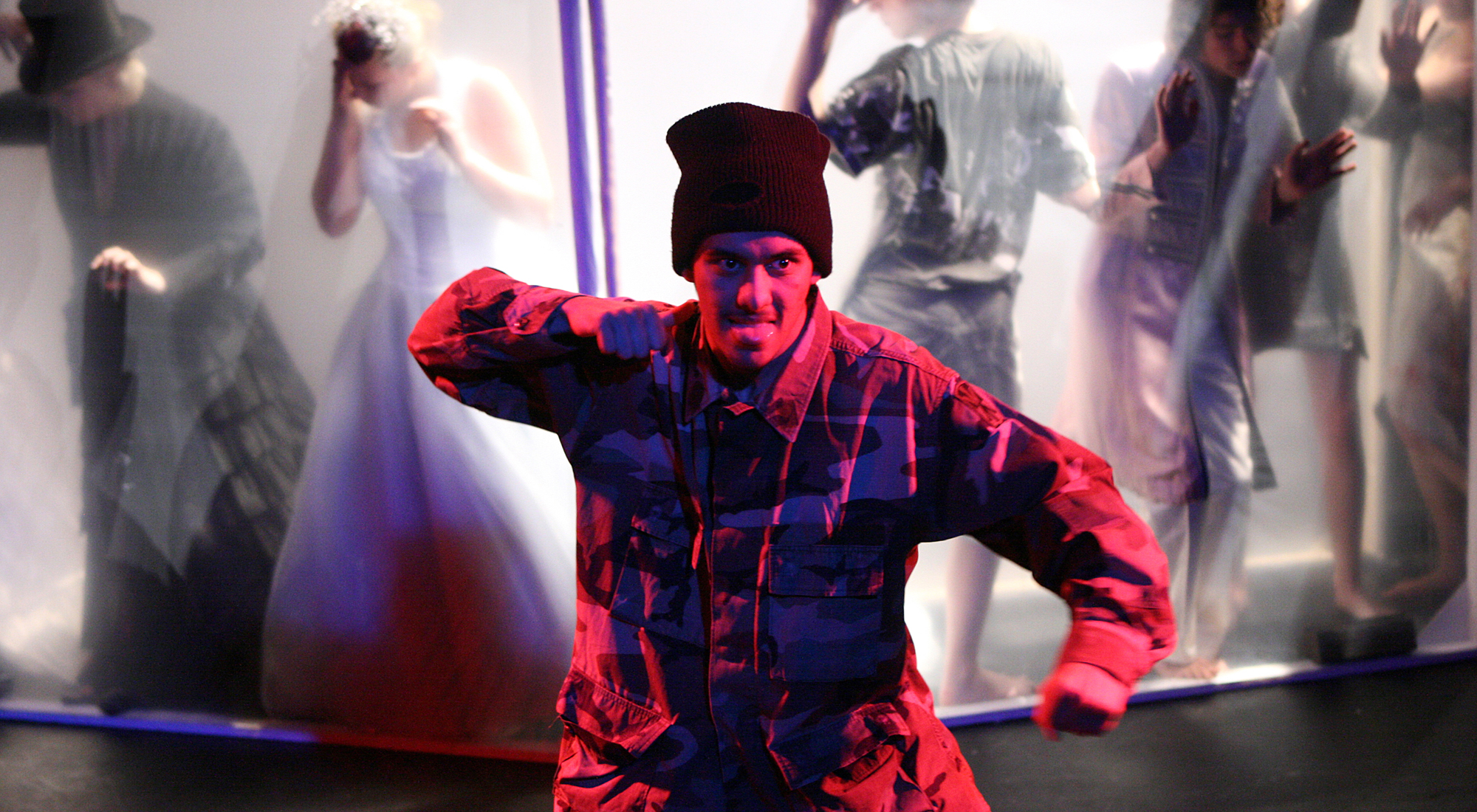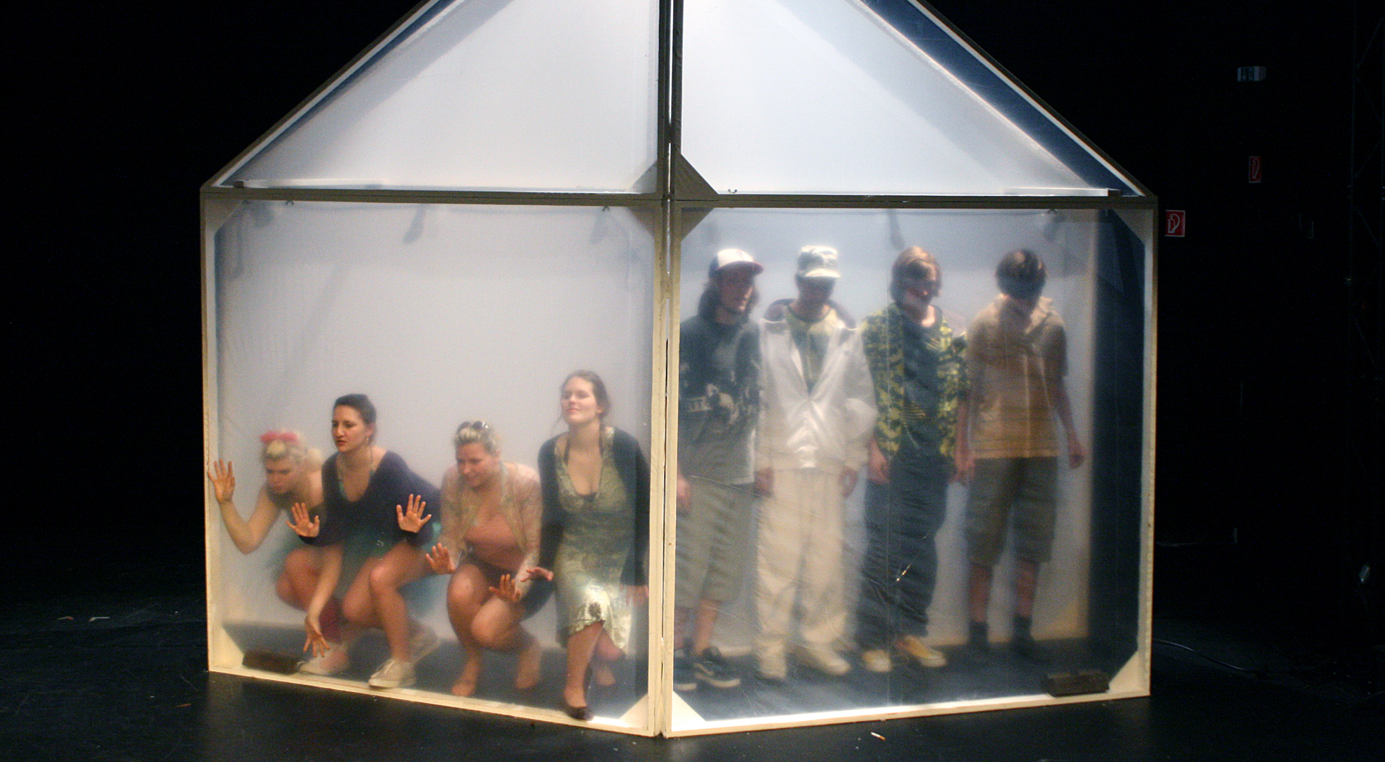 Acht Jugendliche fahren in ein Haus mitten im Wald, um ein Theaterstück zu entwickeln. Doch das wird bald zur Nebensache, denn sie fühlen sich beobachtet und merken, dass sie anscheinend nicht alleine sind. Nach einer Improvisationsphase habe ich den Text den neun Jugendlichen auf den Leib geschrieben, wobei die Grenzen zwischen Realität und Fantasie verschwimmen, der Abend zwischen purer Fiktion und realer Erfahrungswelt in der Schwebe bleibt. Gemäß dem Motto: Daneben, mittendrin oder eben zwischen.