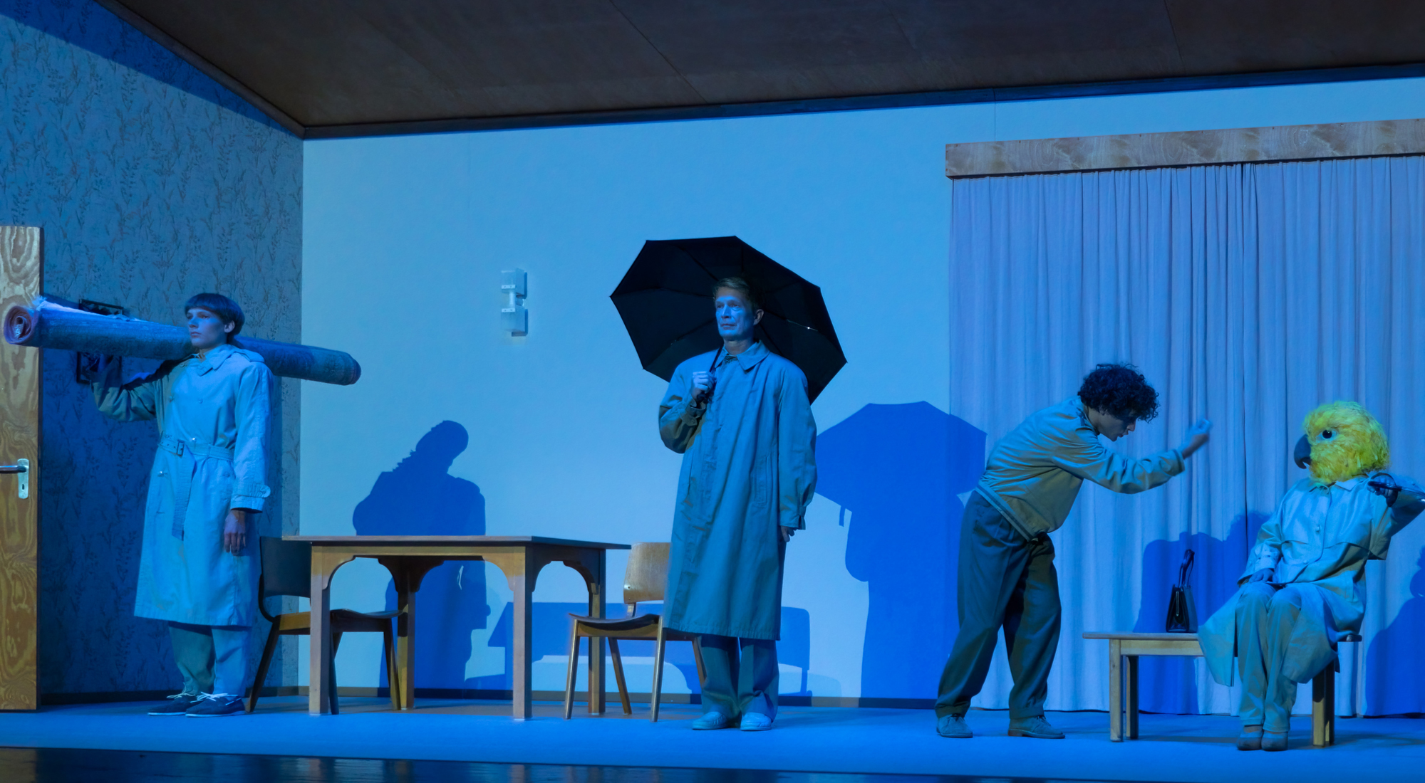 Figuren wie er tauchen auf und ab und wieder auf in dem sonderbaren Szenenreigen Das Gespenst der Normalität der finnischen Autorin und Regisseurin Saara Turunen. Der Titel ist inspiriert von Luis Buñuels Film Das Gespenst der Freiheit. Wo der Film die gesellschaftliche Freiheit in surrealistischen Episoden untersucht, bohrt sich das Theaterstück in unsere Vorstellungen vom Normalen und Alltäglichen. Es erzählt von der Sehnsucht nach dem Gewohnten, aber auch von der Bedrohlichkeit des Andersseins, der Angst, sich von der Menge abzuheben.