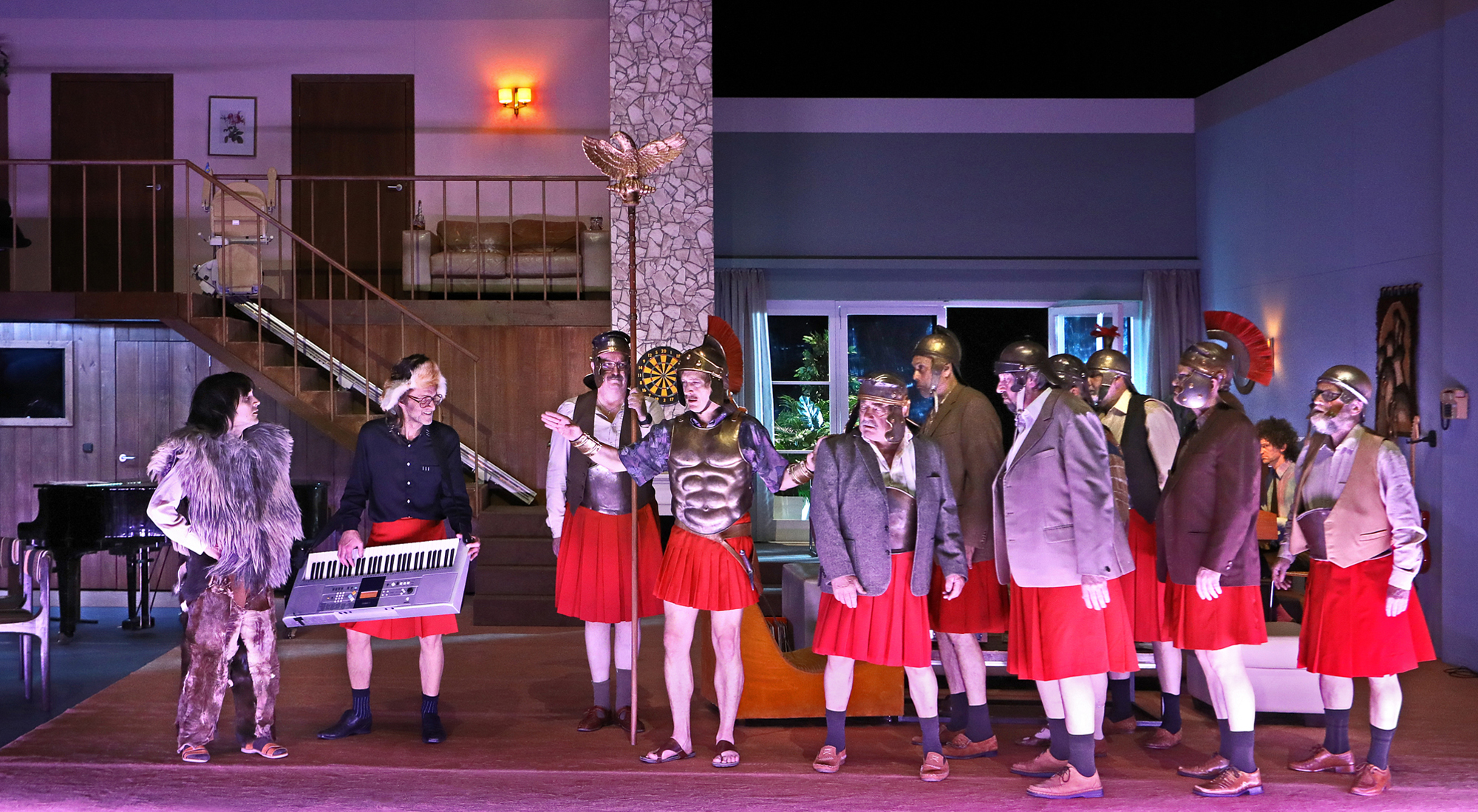 Die Frohsinn Singing Society zur Pflege deutschen Brauchtums – der viel zu wenig bekannte Partnerverein der berühmten Sons of Hermann Lodge in New Ulm, Texas – zeigt anlässlich ihres fünfzigjährigen Bestehens Die Hermannschlacht von Heinrich von Kleist. Das berühmte Theaterstück rund um Hermann den Cherusker, der 9 n. Chr. die Römer aus Germanien vertrieb. Ein deutscher Mythos. Ein Bochumer Mythos: 1982 setzte Claus Peymann das patriotische Heldendrama an der Königsallee zeitkritisch in Szene. Eben dort erwartet Sie heute ein dramatisch-musikalischer Abend auf den legendären Spuren von Hermann, Varus, Thusnelda und den Barbaren im Teutoburger Wald. Holla, die Hörner! Oder anders ausgedrückt: Ah, ha, ha, ha, stayin‘ alive!