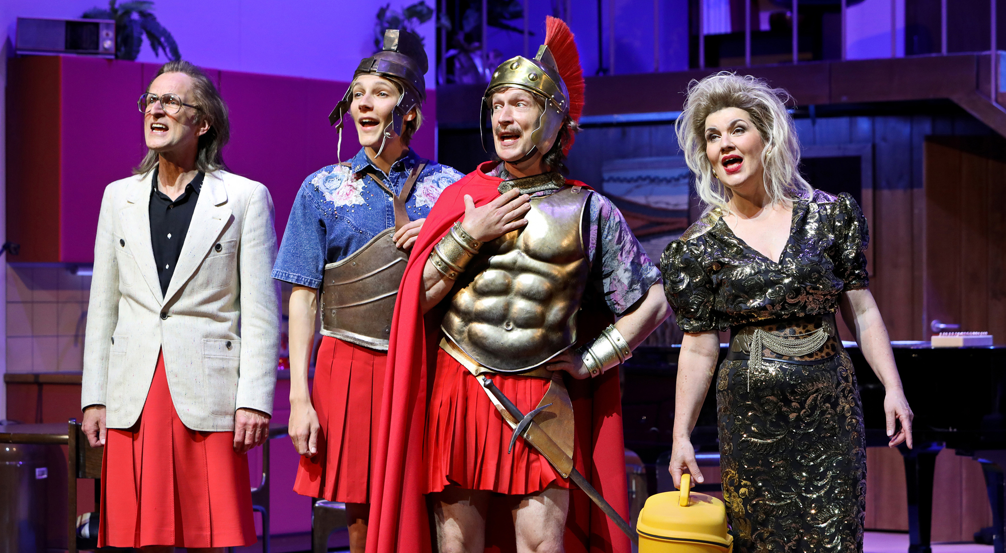 Die Hermannsschlacht – allerdings mit anderem Text und auch anderer Melodie gehört in die Reihe von charmant-persiflierenden Musiktheaterabenden, die die Regisseurin Barbara Bürk und der Musiker, Schauspieler und Regisseur Clemens Sienknecht erfinden und in denen sie klassische Dramen, Romane oder Mythen nostalgisch und schräg nachspielen und nacherzählen. So entstand am Deutschen Schauspielhaus Hamburg Effi Briest – allerdings mit anderem Text und auch anderer Melodie, eingeladen zum Berliner Theatertreffen 2016. Es folgten Adaptionen von Anna Karenina, Madame Bovary und den Nibelungen. Am Schauspielhaus Bochum widmen sie sich mit Pop-Songs, alten und neuen Texten der viel diskutierten Hermannsschlacht von Heinrich von Kleist, dem Stück Weltliteratur, das wohl wie kein zweites mit dem Bochumer Theater verbunden ist.
