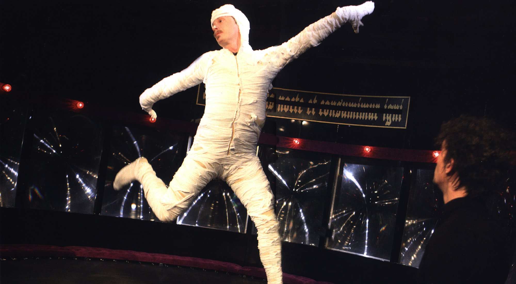 Die fünf Schauspieler hüpfen auf dem Trampolin oder erscheinen wie Kasperlepuppen im Fensterrund. Michael Lippold, der eindrucksvolle Uraufführungs-Gospodin, rollt als Zeitungschef jedesmal wie aus der Geisterbahn herein und ist im Pärchen-Duo mit Alexander Ritter ein tütteliger Schwuler mit Wohlstandsbauch und Goldfliege. (Theater heute)