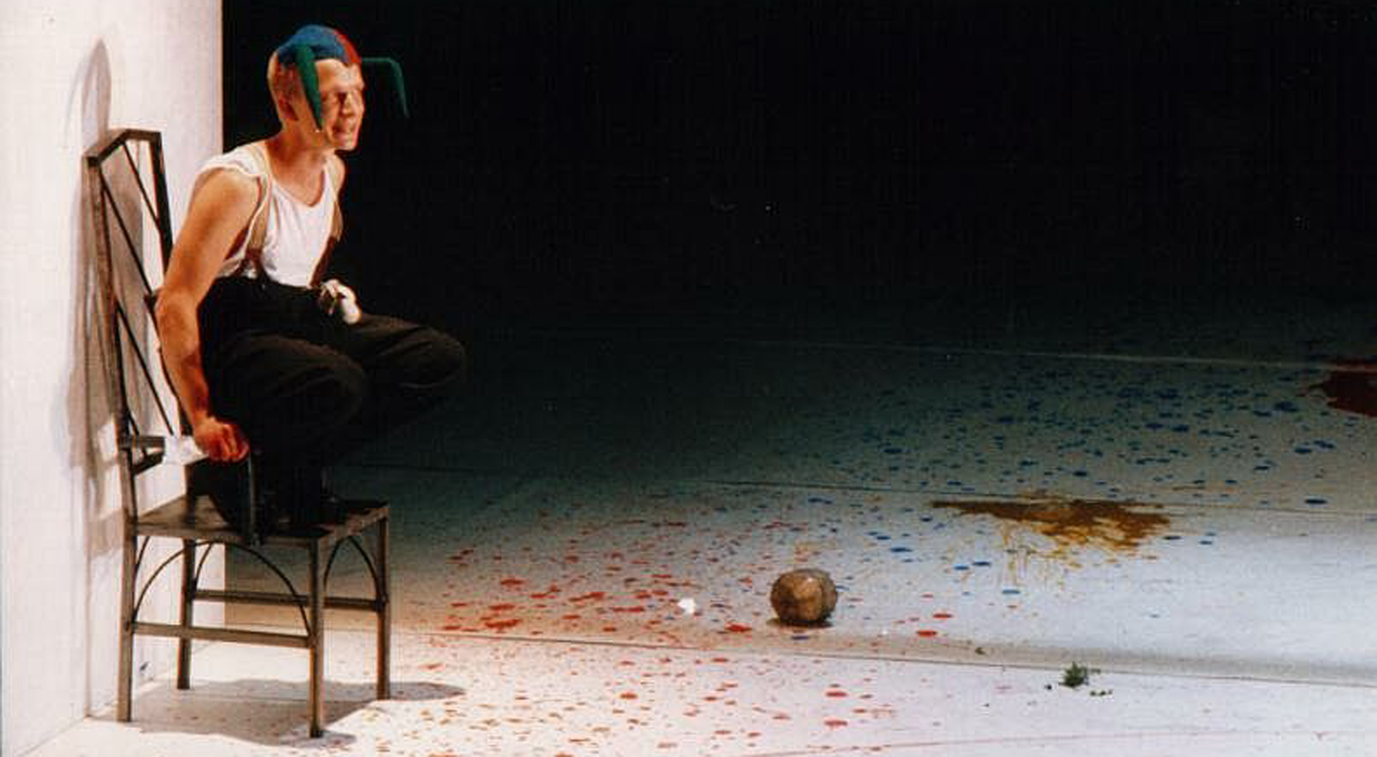 Halmet ist ein junger Mann, der zunächst vor dem System, dem Staat, den Eltern davonläuft, ins Exil geht, nach Wittenberg an die Universität. Die Ereignisse zwingen ihn zurück nach Dänemark. Hier wird er plötzlich mit einer Reihe von Problemen konfrontiert, denen er nicht gewachsen ist, weil er sich in einer Krise der Selbstfindung befindet. In einer Phase, die eigentlich Loslösung erfordert, wird er mit Erwartungen und Forderungen belastet, die ihn handlungsunfähig machen. Er ist nicht eine Figur, die aus dem Grübeln kommt, sondern aus dem Spiel. Hamlet wäre gerne der Narr, der sich dem Druck der Wirklichkeit und des Systems entziehen kann. Dies gelingt ihm nicht. Er braucht Monologe, um die Welt anzuhalten, um nicht handeln zu müssen. Er tritt so lange auf der Stelle, bis er begreift, dass er sich von seiner Kindheit trennen und erwachsen werden muss. Leider zu spät.