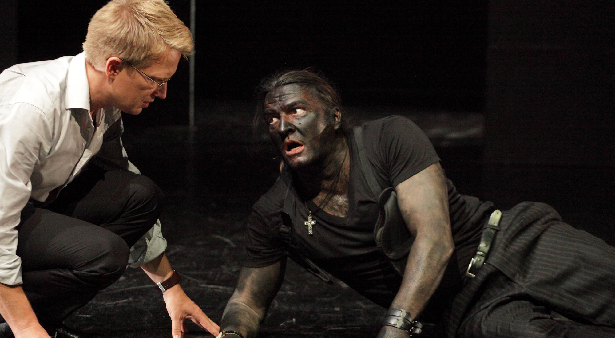 Als des schwarzen Generals Gegenpart agiert Michael Lippold, der den Erz-Intriganten Jago als Showmaster des Perfiden anlegt, der gefühlsglatt sein heimtückisches Treiben aufzieht. Er, der Kasperle-Spieler des Untergangs, steht fast immer neben dem Geschehen, das er lenkt, wie er will, weil ihm alle vertrauen: Jago, die reine Bosheit, ein Shakespear’scher Urtyp. (WAZ)