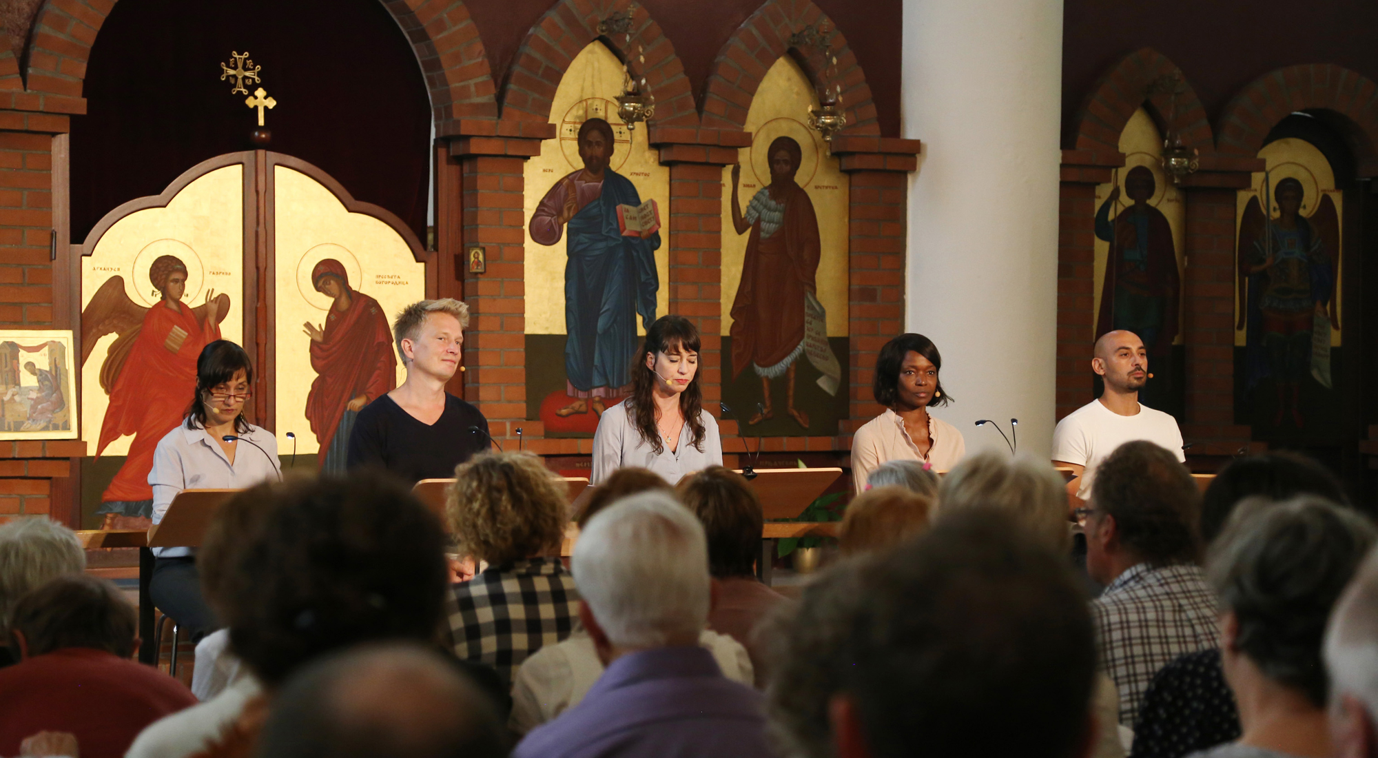 Es spricht der Chor der gläubigen BürgerInnen. Doch kaum fängt einer an zu reden, da fällt ihm der andere schon ins Wort. Der Chor findet keine gemeinsame Sprache und doch ist es ein Chor, der ein Gegenüber kennt: die Nicht-Gläubigen. Globalisierung, Migration und der gleichzeitige Verlust religiöser Bindungen haben aus unseren Städten Orte der religiösen und weltanschaulichen Vielheit gemacht. Muslime, Buddhisten, Hindus, Sikh, Juden sowie christliche Glaubensgemeinschaften aus der ganzen Welt – Pfingstler, Evangelikale, Katholiken, Protestanten und Orthodoxe – machen das Ruhrgebiet zur religiösen Megacity.